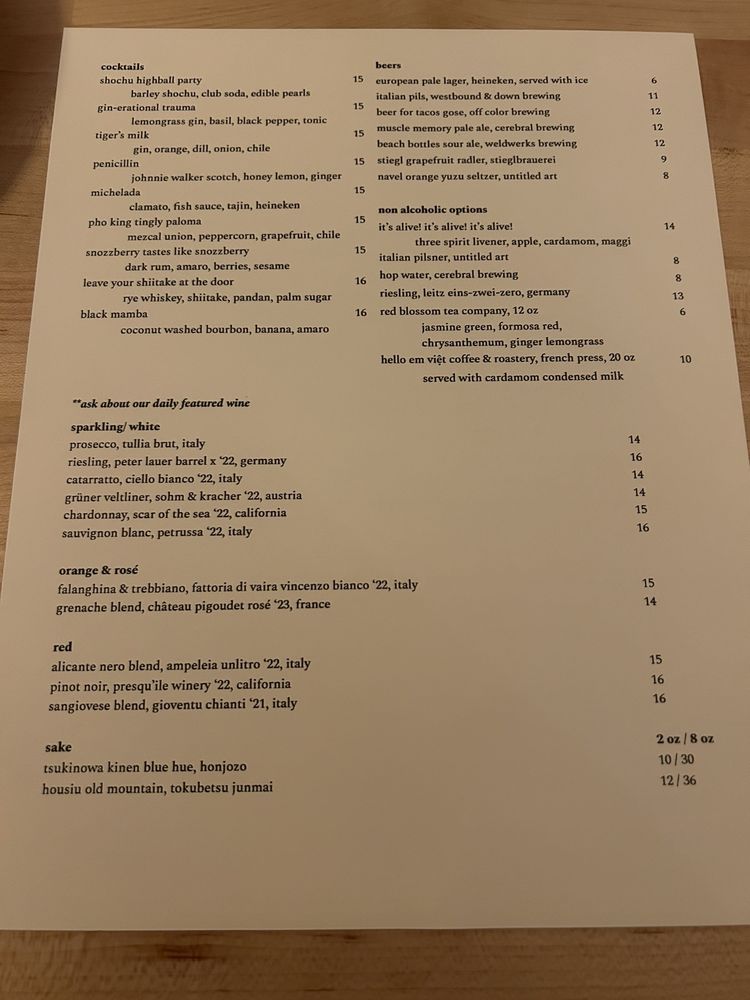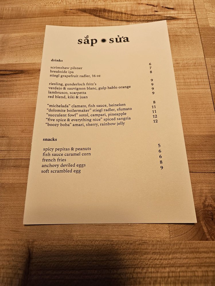 Introducing sắp sửa, a Vietnamese wine and cocktail bar located in Denver, CO, offering a trendy and upscale dining experience. The menu features non-traditional Vietnamese dishes with a modern twist, encouraging shared family-style dining with 2-3 dishes per person. The ambiance is described as cozy and relaxed, with friendly and knowledgeable service.